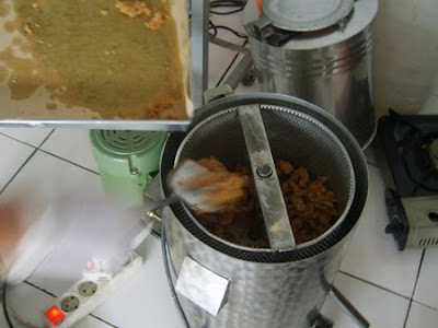 Bila Anda menginginkan hasil pembuatan jemur crispy lebih awet dan maksimal maka sebaiknya minyak yang ada pada jamur yang sudah digoreng harus benar-benar tiris. Namun ada cara mudah untuk membuat minyak benar-benar tiris, salah satunya adalah dengan menggunakan alat peniris minyak. Para peserta diajak secara langsung melihat cara kerja alat ini, sehingga para peserta dapat langsung membandingkan hasil jamur crispy ini setelah ditiriskan dengan alat ataupun tidak. Bila jamur crispy benar-benar tiris dari minyak akan sedikit memperpanjang masa simpan, hal ini dikarenakan makanan yang diiproses dengan cara digoreng masa simpannya akan lebih pendek karena rasanya akan berubah menjadi tengik.